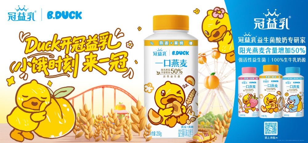 比如,冠益乳与潮流IP B.DUCK的联名合作,以“一口燕麦”系列成功实现品牌破圈。通过包装视觉焕新与配方健康升级,该系列不仅在社交平台引发自发晒图热潮,有效提升了品牌年轻化声量,更显著拉动了终端销售转化。此次联名,一方面赋予了冠益乳更时尚的活力,另一方面助力B.DUCK突破原有圈层,触达食品消费新场景,真正实现了“品牌共振、双向赋能”的共赢效果。随着联名产品持续热销,其话题效应持续扩散,进一步巩固了产品在年轻消费者心中的影响力与好感度。
