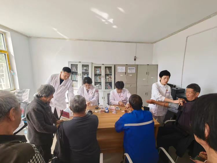活动伊始,由第一手术室党支部和麻醉一科党支部党员组成的手麻组率先为村民测量血压、血糖,有序引导至各专科诊区。针对行动不便的老人,党员志愿者全程搀扶陪伴,确保每位村民都能及时得到服务。现场村民有序排队,医护人员耐心登记,义诊氛围温馨而高效。