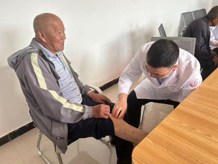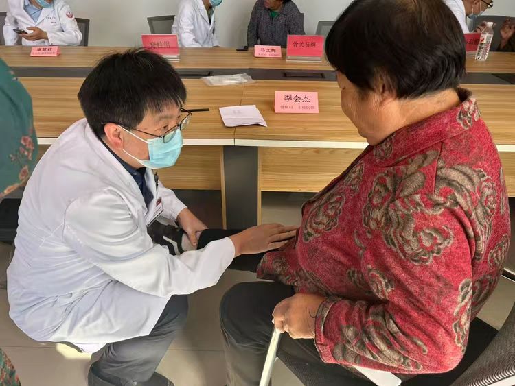 骨病科党支部、脊柱外科党支部、手外科党支部、足外科党支部、创伤急救中心党支部、甲乳疝外科党支部、心血管二科党支部党员及关节科专家组成多学科医护团队联合坐诊,针对老区常见健康问题提供专业诊疗。骨关节组为骨关节炎患者制定康复方案,手足外组处理外伤及疼痛问题,脊柱组筛查腰椎疾病并指导护腰动作,内外科团队则重点解答慢性病管理疑问,全方位守护村民健康。