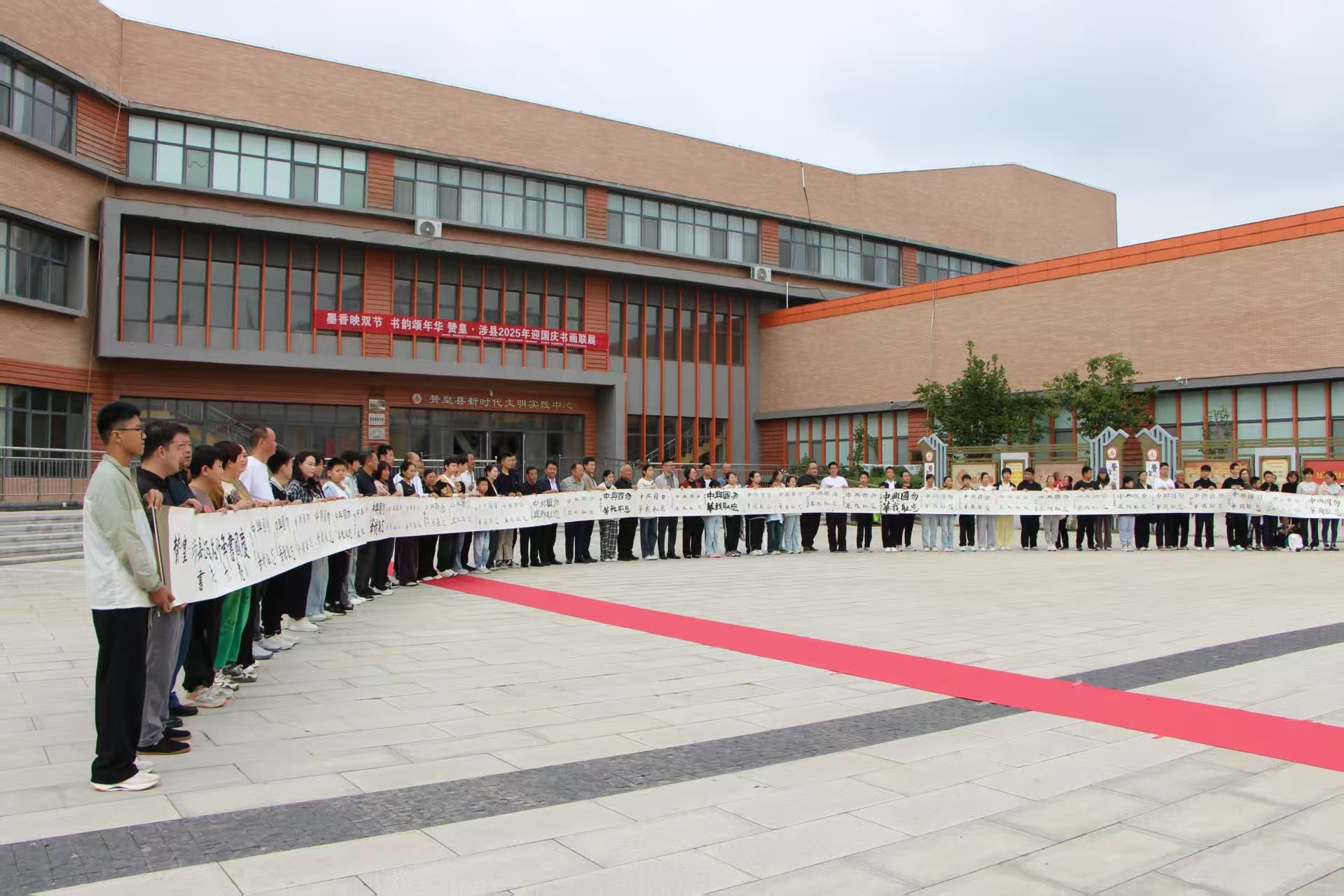活动现场,来自涉县、赞皇两县的百名青少年共书百米长卷“勿忘国耻—兴我中华”,笔锋间饱含青少年对祖国的热爱与担当,长卷完成后,全体嘉宾与学生合影留念,将这份红色记忆定格,长卷将由赞皇县图书馆作为馆藏作品永久收藏。