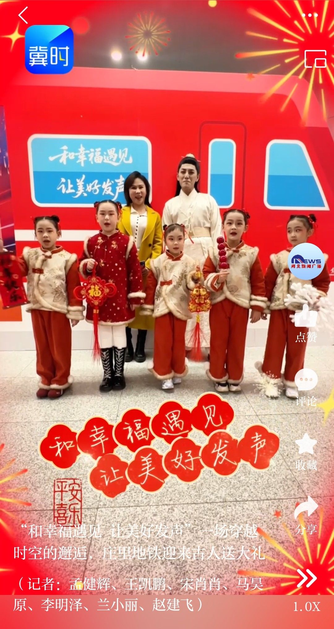 2026年2月10日(农历小年),河北广播电视台(集团)携手交通银行河北省分行、石家庄市交投集团所属轨道集团成功举办“和幸福遇见 让美好发声——2026河北广播电视台(集团)地铁迎新春活动”。交通银行河北省分行党委书记、行长刘清军,石家庄市交投集团所属轨道集团党委书记、董事长付朝立,省委宣传部副部长,河北广播电视台(集团)党委书记、台长贾永清出席活动。交通银行河北省分行、石家庄市交投集团所属轨道集团有关领导,河北广播电视台(集团)领导刘晓梅、冀国锋、刘欣、罗大成,以及相关部门(单位)主要负责同志共同参加。