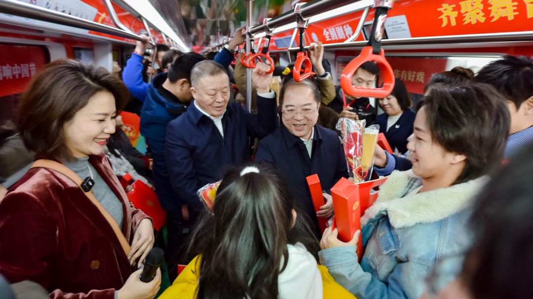 活动中,“中华有好戏”河北广电地铁专列首发。专列以“中华有好戏,唱响中国节”为主题,深度融入国风、国韵、国粹元素,通体中国红的主色调营造出浓厚的春节氛围。活动主办方领导与《中华有好戏》节目主持人一同登上专列,携新春大礼包与乘客亲切互动并送上新春祝福。戏曲名家现场献唱经典选段,用国粹魅力传递新春暖意。