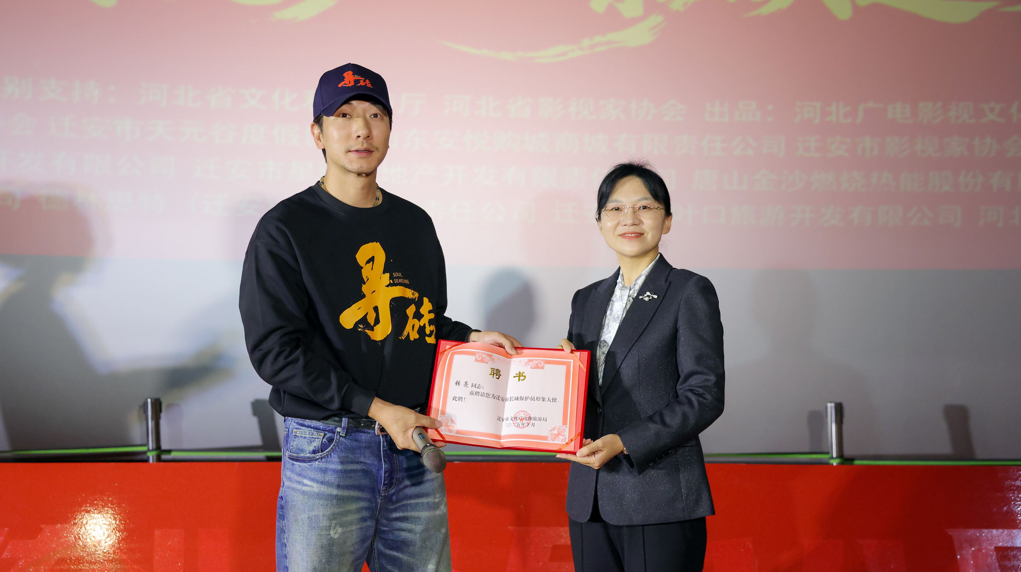 导演李伟携主演张亮、刘俊孝、郑强、赵毅等主创团队一同出席了此次首映式。随着影片主创团队悉数亮相,活动正式拉开帷幕。主创团队与观众分享幕后故事,导演李伟表示,希望用一种“举重若轻”的方式,让观众在欢笑中感受到长城守护的深刻意义。从“寻砖”到“守护”,主演张亮在电影《寻砖》首映式上,正式受聘为“迁安市长城保护员形象大使”。他现场承诺,将积极履行大使职责,号召公众关注长城,接力文化遗产守护。