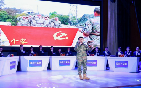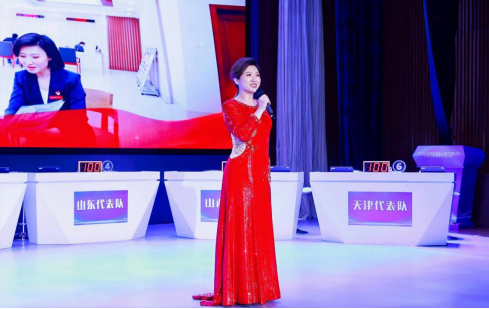 竞赛现场,河北退役军人倪彬彬、退役军人工作者陈倩以节目的形式,生动展示河北精神、河北形象、河北担当。
