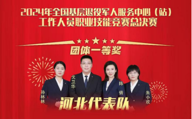 日前,由退役军人事务部举办的2024年全国基层退役军人服务中心(站)工作人员职业技能竞赛总决赛在北京市落下帷幕。河北代表队以绝对优势,荣获团体一等奖(第一名)和个人二等奖、三等奖的优异成绩,充分展现了新时代新征程上河北退役军人工作者奋勇拼搏的良好风貌,生动诠释了“学思践悟强能力、满腔热忱优服务”的竞赛主题,用实际行动奋力谱写河北退役军人工作新篇章。