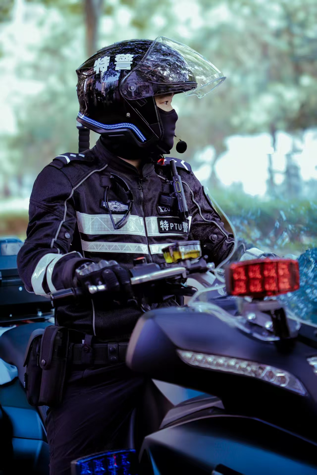 刘蕴恒驾驶摩托车开展巡逻防控。