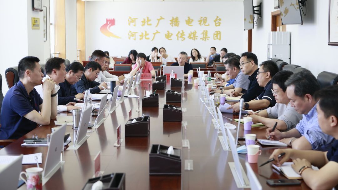 5月17日下午,长城新媒体集团党委委员、技术总监张保安带队到电视制作中心调研,参观了制作机房、数据机房和800、400、300平米演播室,双方就技术合作、融合发展等进行了交流座谈。总工程师杜立喜参加。