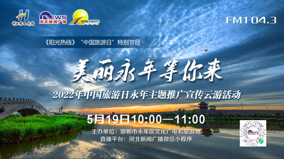 新闻频率群《河北新闻》节目推出特别策划,深度解读当下火爆的“露营经济”。《阳光热线》节目携手邯郸市永年区,联合策划推出“美丽永年等你来”——中国旅游日主题推广宣传“云游”活动,频率微信公众号视频直播观看量达20万。