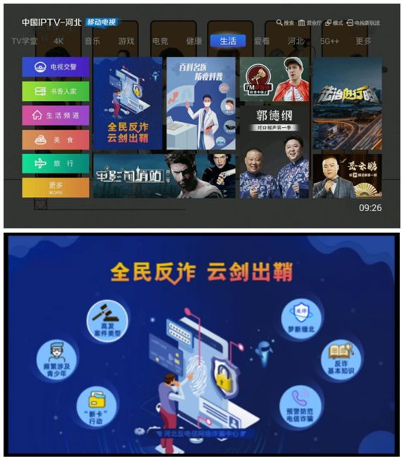 在“全民反诈在行动”集中宣传月期间,无线传媒公司与省反电信网络诈骗中心深化合作,在河北IPTV平台上线“全面反诈 云剑出鞘”专区,开设“反诈基本知识”“高发案件类型”“涉青少年类诈骗”“梦断缅北”“断卡行动”“预警防范电信诈骗”6个版块和海量宣传素材,助力增强公众识骗意识和防骗能力,共同推进我省“智慧广电+反电信网络诈骗”平台建设。