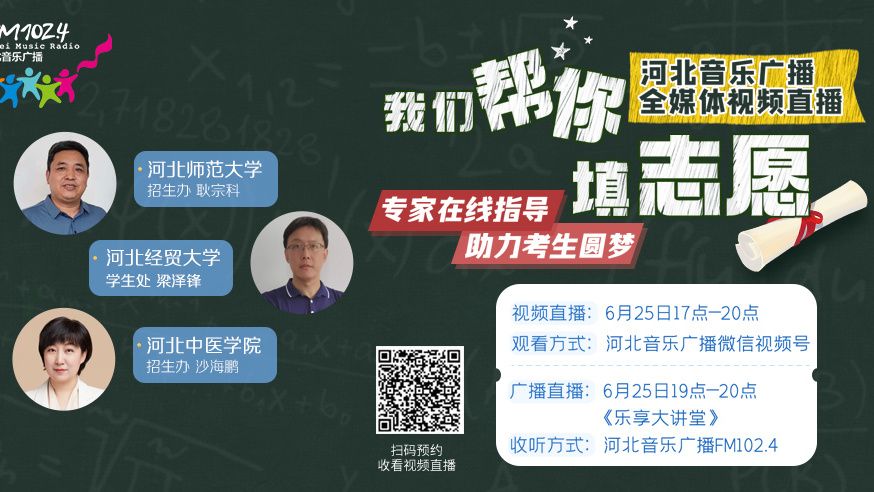 6月25日,音乐频率推出全媒体特别策划《我们帮你填志愿》,邀请河北师范大学、河北经贸大学、河北中医学院等多所高校招生办的工作人员做客直播间,指导考生科学填报志愿。节目通过“广播+视频”同步直播,获得受众好评。