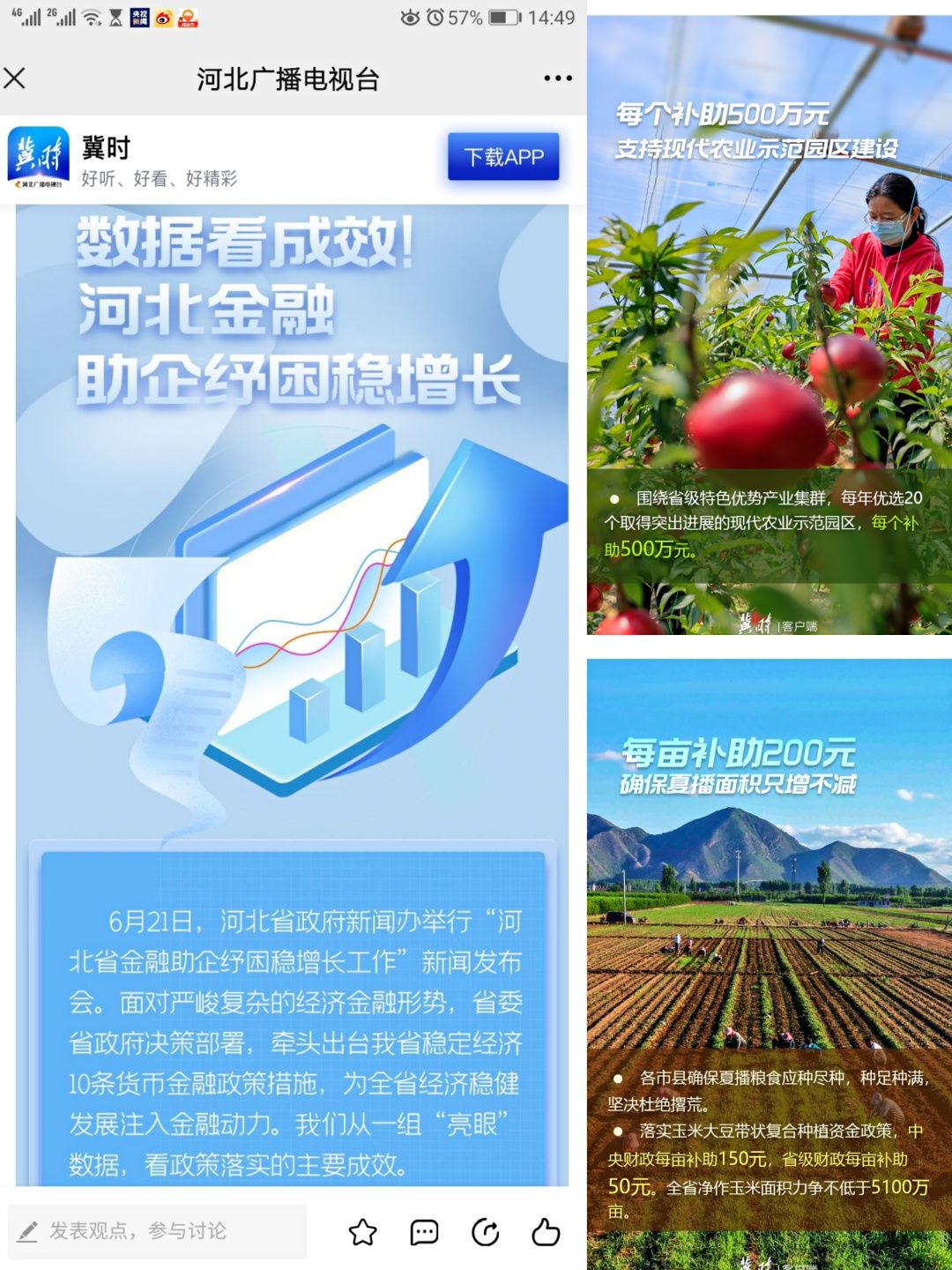 新媒体中心聚焦京津冀协同发展、加强项目建设、全面推进乡村振兴、绿色低碳发展、以人民为中心等主题,策划推出《河北:这些行业“顶流”,助推县域经济高质量发展》《数据看成效!河北金融助企纾困稳增长》《乡村振兴看河北|生态宜居美丽乡村 开启“美颜”新模式》《当井陉打出陶瓷文化旅游牌》《最高奖励2000万!河北硬核助力农业发展》等多组原创产品,以图解、海报、短视频等形式,对全会精神落实情况进行全方位报道。