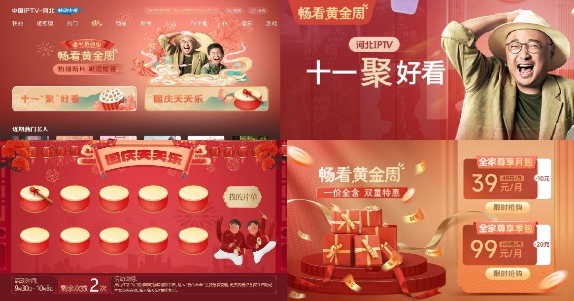 河北IPTV平台精心设置“国庆”背景图和特色主题插屏,推出《国庆天天乐》福利活动;上线《十一“聚”好看》《家庭剧场》影视专题、《动画趣多多 快乐在集结》少儿专题等,满足各年龄段用户居家收视需求。同时,策划订购组合产品超值活动,为用户提供精彩视听体验。