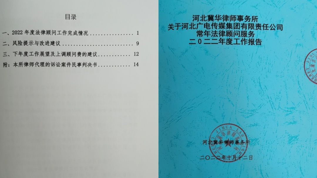 10月份以来,法律事务部组织对台(集团)常年法律顾问进行年度考核,并提交了《年度法律服务工作报告》。报告对在服务过程中,发现的一些易发法律风险进行了提示,并给出了改进建议。