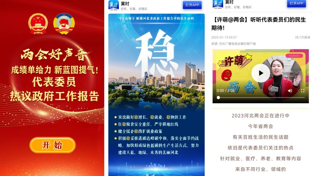 新媒体中心加强原创力度,搭建网络专题《聚焦2023河北两会》,推出“融媒两会”“两会好声音”等多个版块,集纳发布重点稿件169篇。推出网络直播《2023河北省两会开幕在即 政协委员、人大代表陆续抵石报到》,并以H5、SVG、长图海报、短视频、评论等多种形式,策划推出《一笔一划 奋力书写河北2023》《数读政府工作报告|过去5年,河北这些成绩真给力!》《坚定信心 继续走好高质量发展之路》等16篇稿件,全方位呈现省“两会”热点和亮点内容。