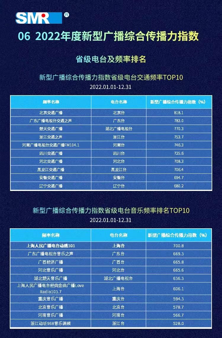 近日,赛立信发布2022年度新型广播综合传播力指数省级媒体及频率排名,河北交通广播位列“新型广播综合传播力指数省级交通频率TOP10”第7名;河北音乐广播排在“新型广播综合传播力指数省级音乐频率TOP10”第4名。