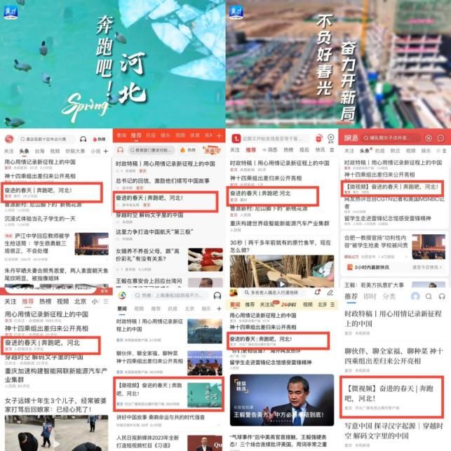 本周,新媒体中心制作推出的微视频《奔跑吧,河北》,获得中央网信办在全网三条置顶推送,并被“新华社”客户端、“学习强国”平台总站选用;央广网、光明网、腾讯新闻等多个平台在“首页首屏置顶”显著位置进行转发。《美丽河北》系列专题在国家广电总局APP“中国视听”首页首屏推出,发布稿件25篇。