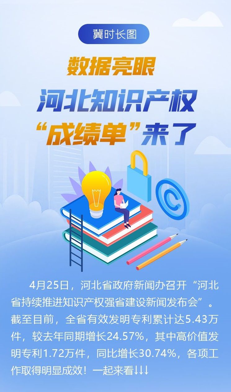 新媒体中心策划推出《数据亮眼!河北知识产权“成绩单”来了》,从知识产权战略深入实施、创造活力持续迸发、效益显著增强、知识产权保护力度不断增大、服务质量更加优化等方面,以多组亮眼数据,展示我省知识产权工作取得的进展成效。