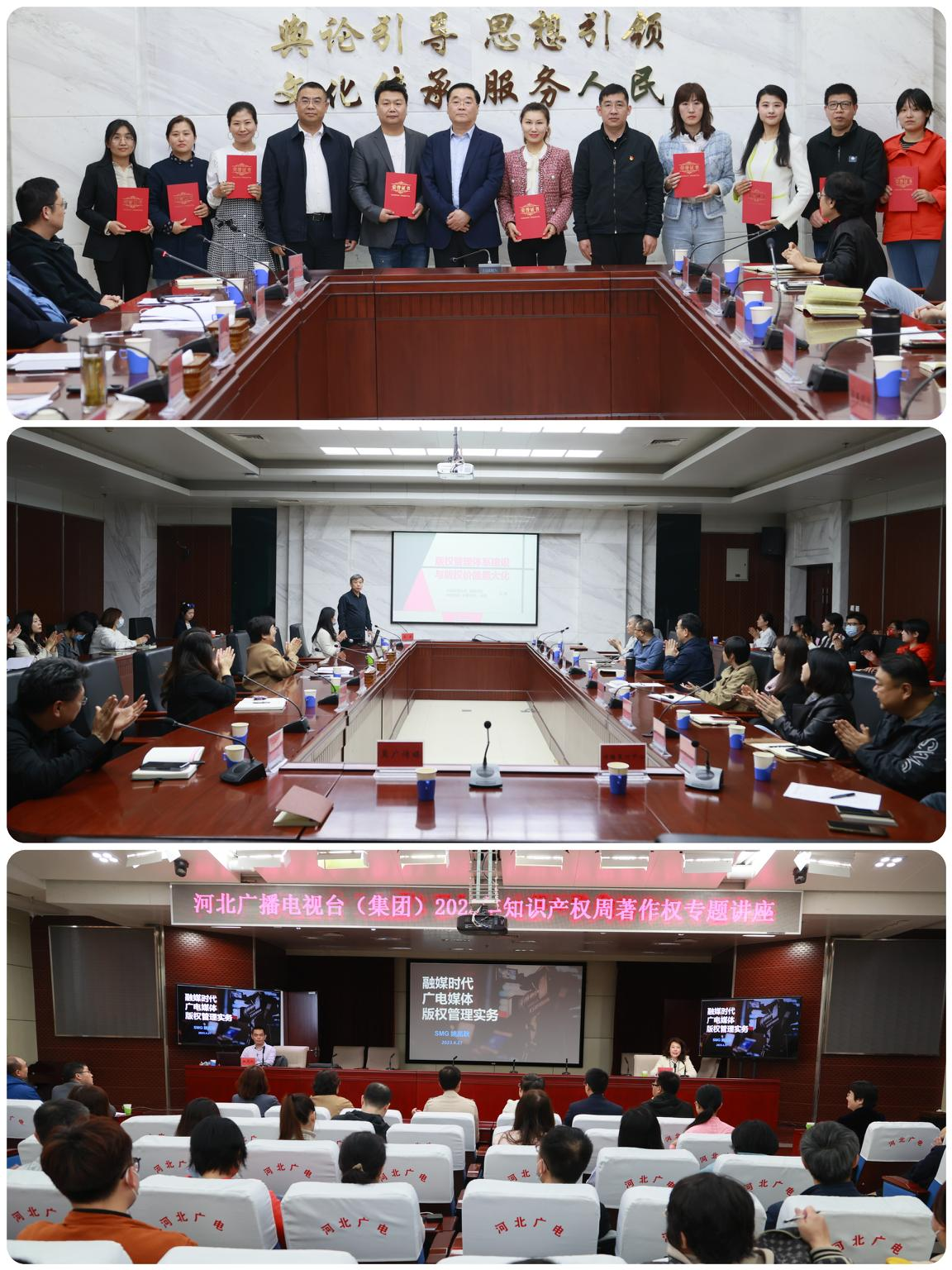 4月23日—28日,台(集团)分别召开优秀版权专员通报表彰会、全链式版权保护交流座谈会和著作权专题讲座等相关活动,总编辑李社军,台(集团)领导张洲、冀国锋、刘欣参加。同时,媒资管理中心组织开展“新闻稿件版权与节目生产”和“字体版权使用规范”专项培训,制作“你应该知道的版权知识”宣推海报,播放“知识产权系列公益广告”,助力进一步提升台(集团)干部职工的版权保护和版权营销意识。