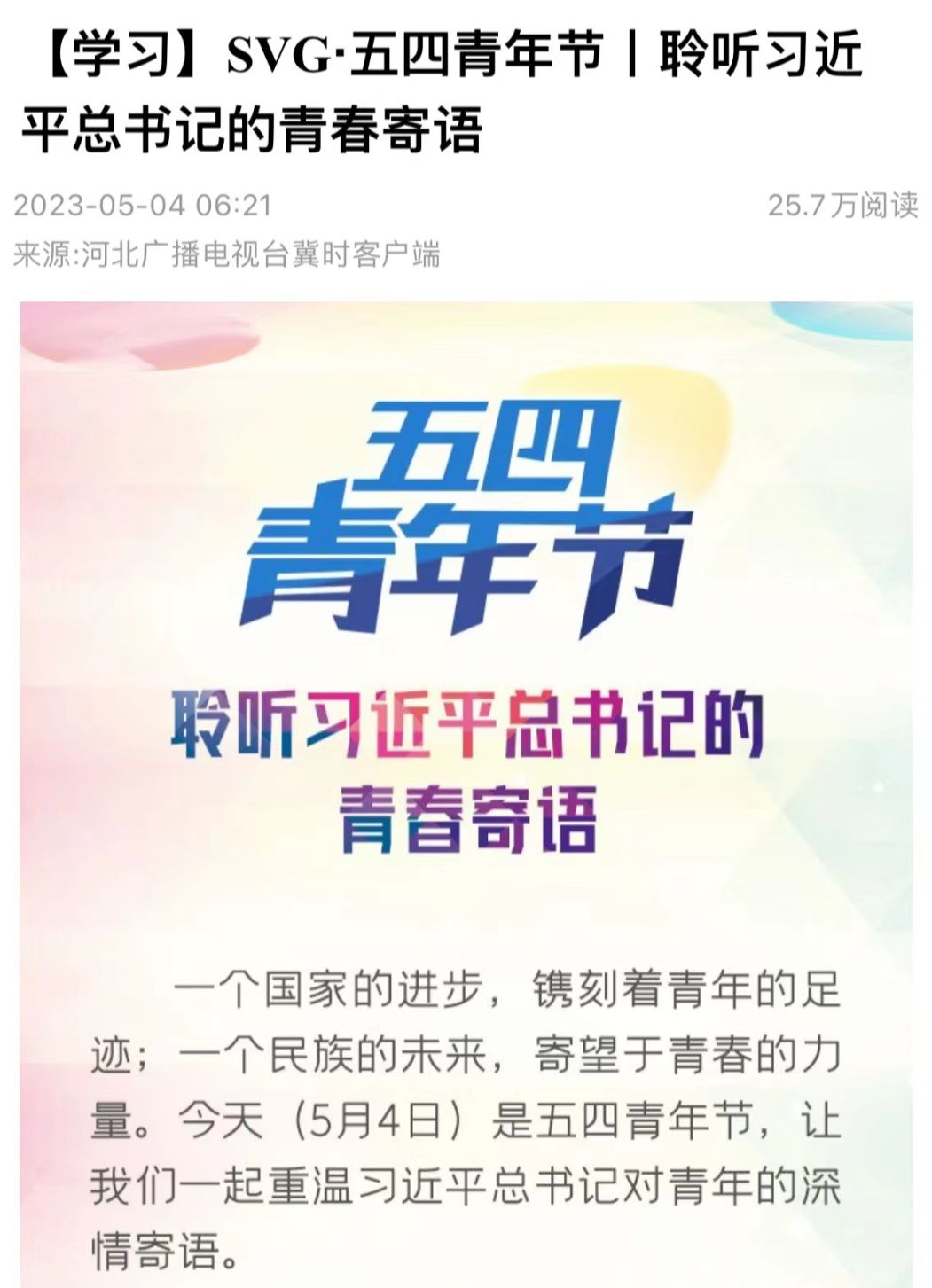 新媒体中心策划推出《聆听习近平总书记的青春寄语》《弘扬五四精神,为推进中国式现代化河北场景贡献青春力量》,带网友重温习近平总书记对青年的深情寄语,呼吁广大青年学习、弘扬五四精神,为祖国贡献青春力量。