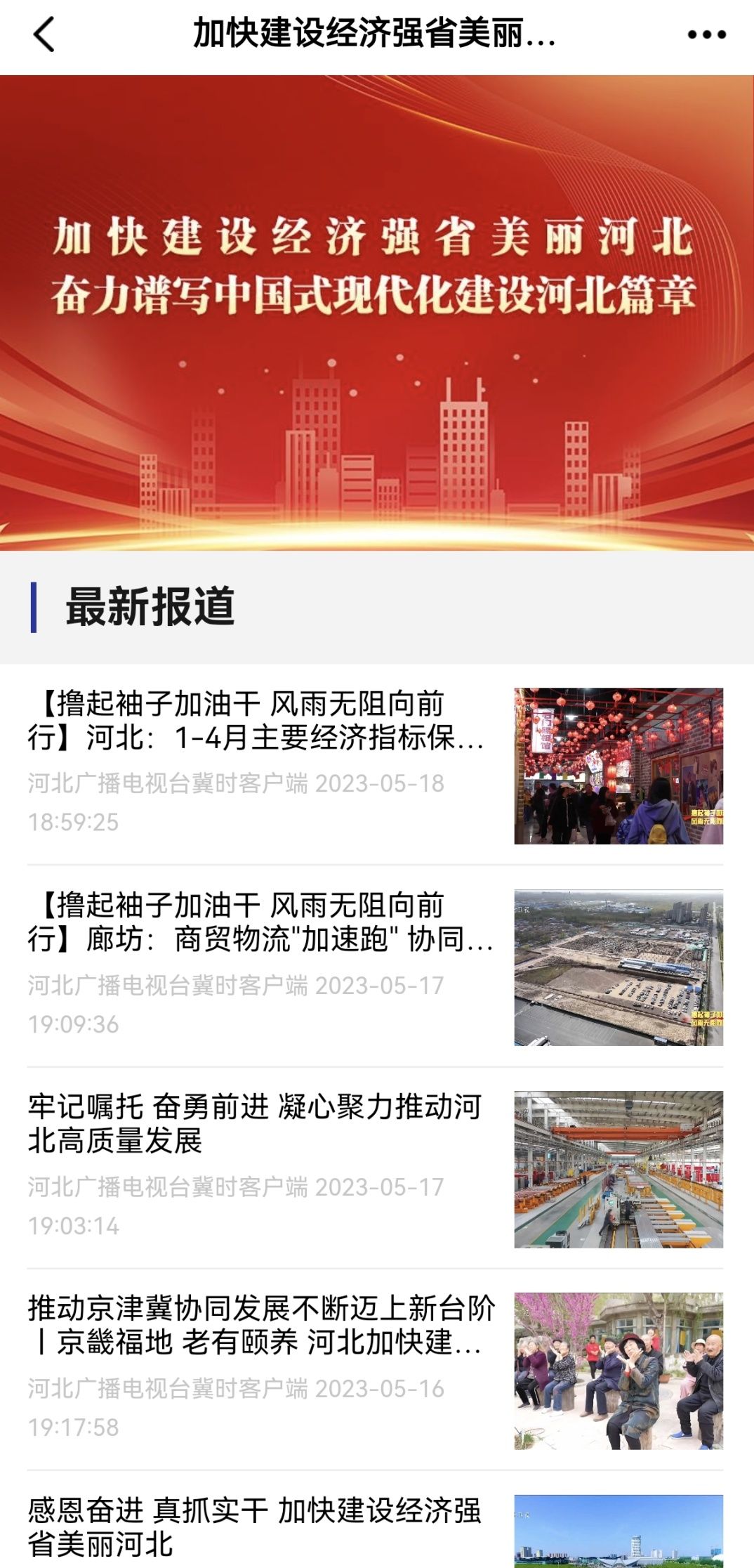 新媒体中心搭建“加快建设经济强省美丽河北 奋力谱写中国式现代化建设河北篇章”专题,制作推出《写满“了”! 一件接着一件办 河北交出乡村振兴精彩答卷》《协作提速,河北有“数”》《360度!看,五月的河北多壮美》等多组原创产品,全景呈现我省高质量发展的最新进展和成效。