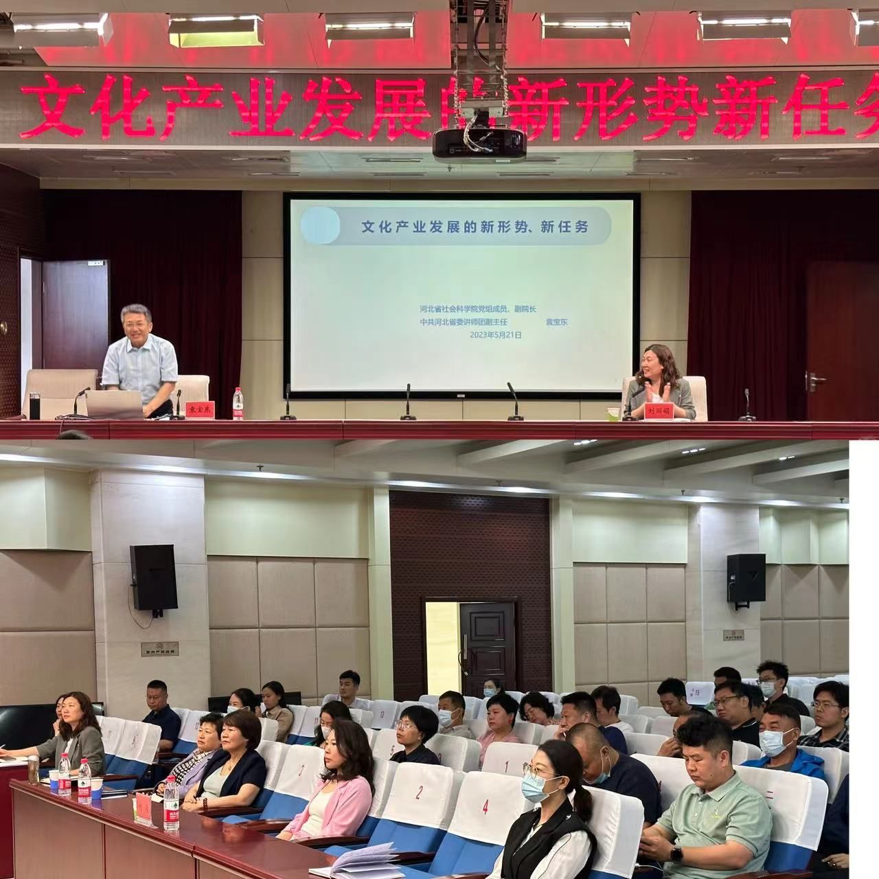 5月21日,投资管理部和人力资源部组织“文化产业发展的新形势新任务”专题培训,省社会科学院党组成员、副院长,省委讲师团副主任袁宝东授课。副总经理刘欣,台(集团)相关部门和单位70余人参加。