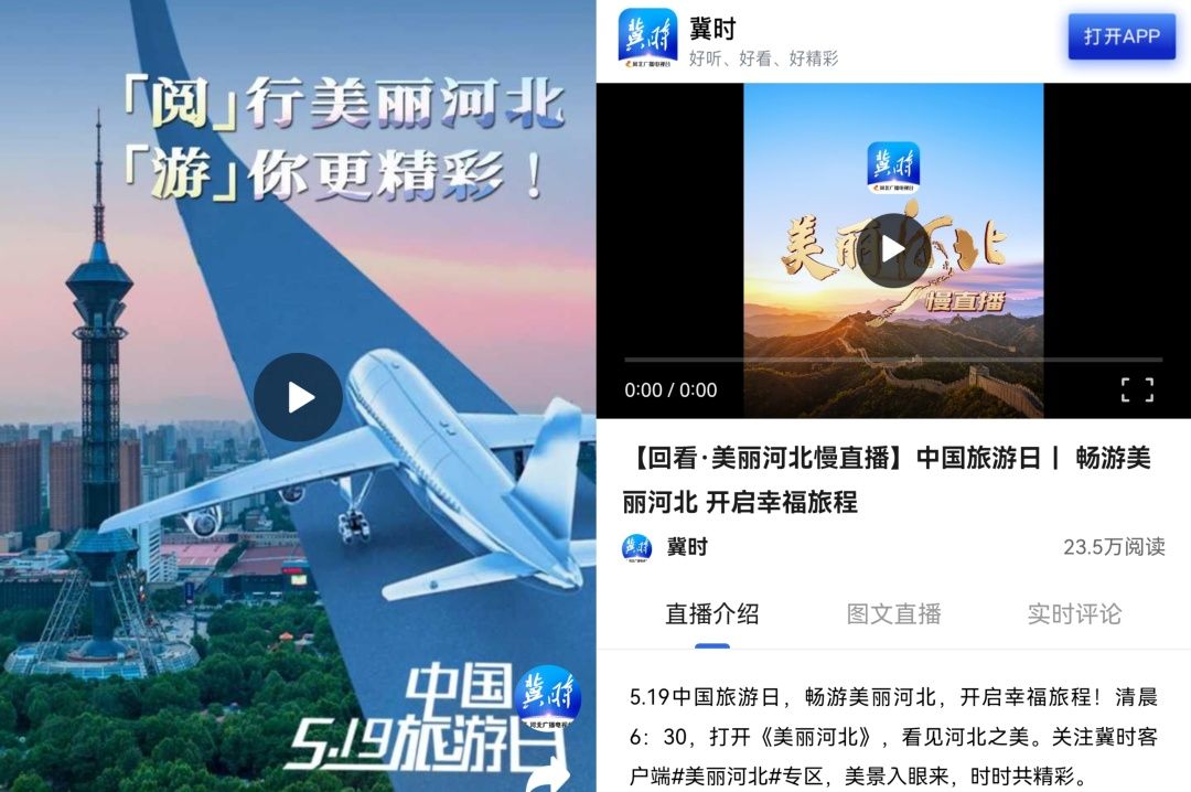 新媒体中心制作发布《「阅」行美丽河北,「游」你更精彩!》《翻转~带你“转转”美丽河北》《畅游美丽河北 开启幸福旅程》等原创产品,全面展示我省特色文旅资源。