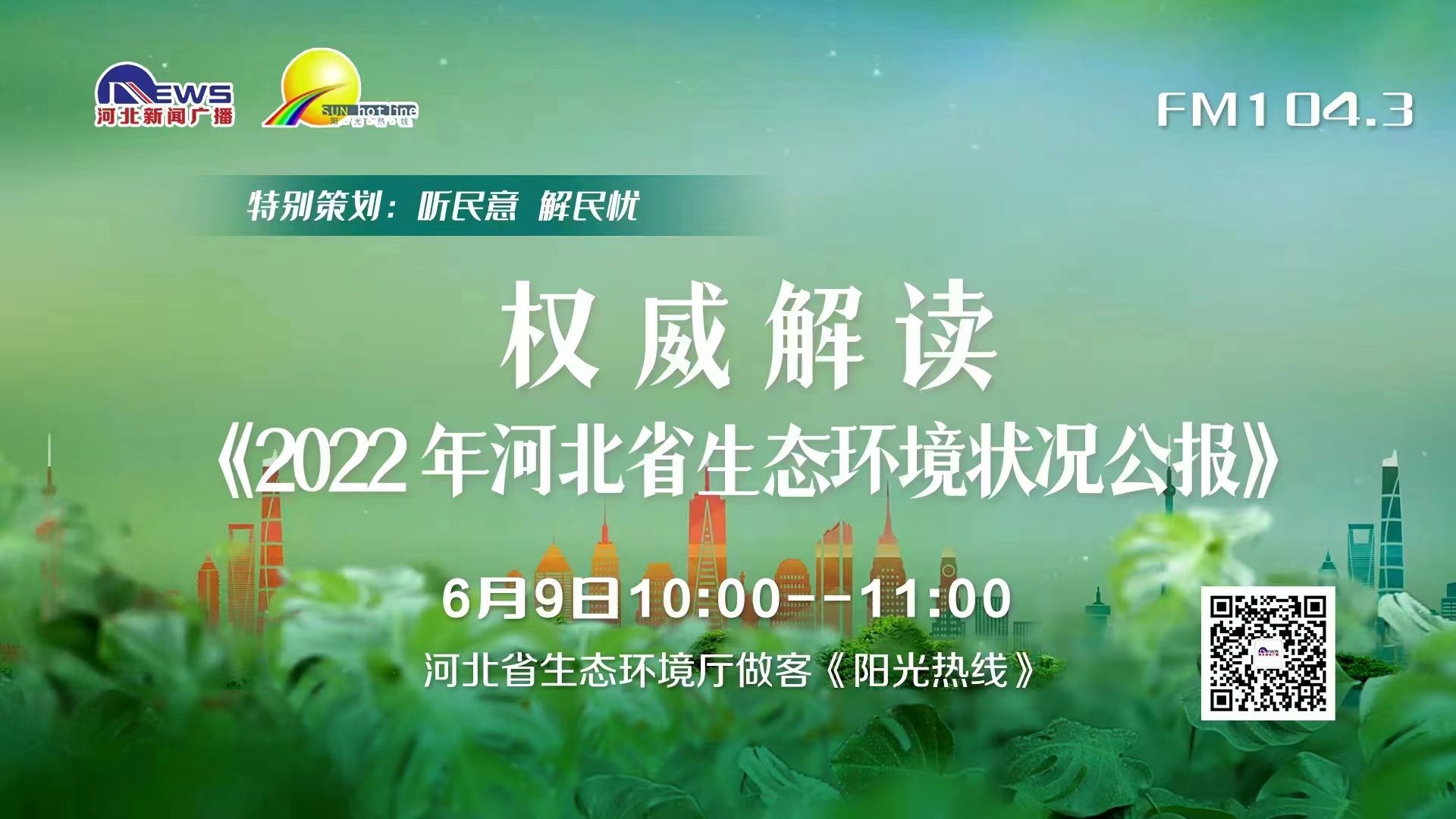 6月9日,新闻频率群《阳光热线》节目邀请省生态环境厅嘉宾做客直播间,权威解读《2022年河北省生态环境状况公报》,并详细介绍我省生态环境状况及水生态环境、海洋生态环境保护情况。