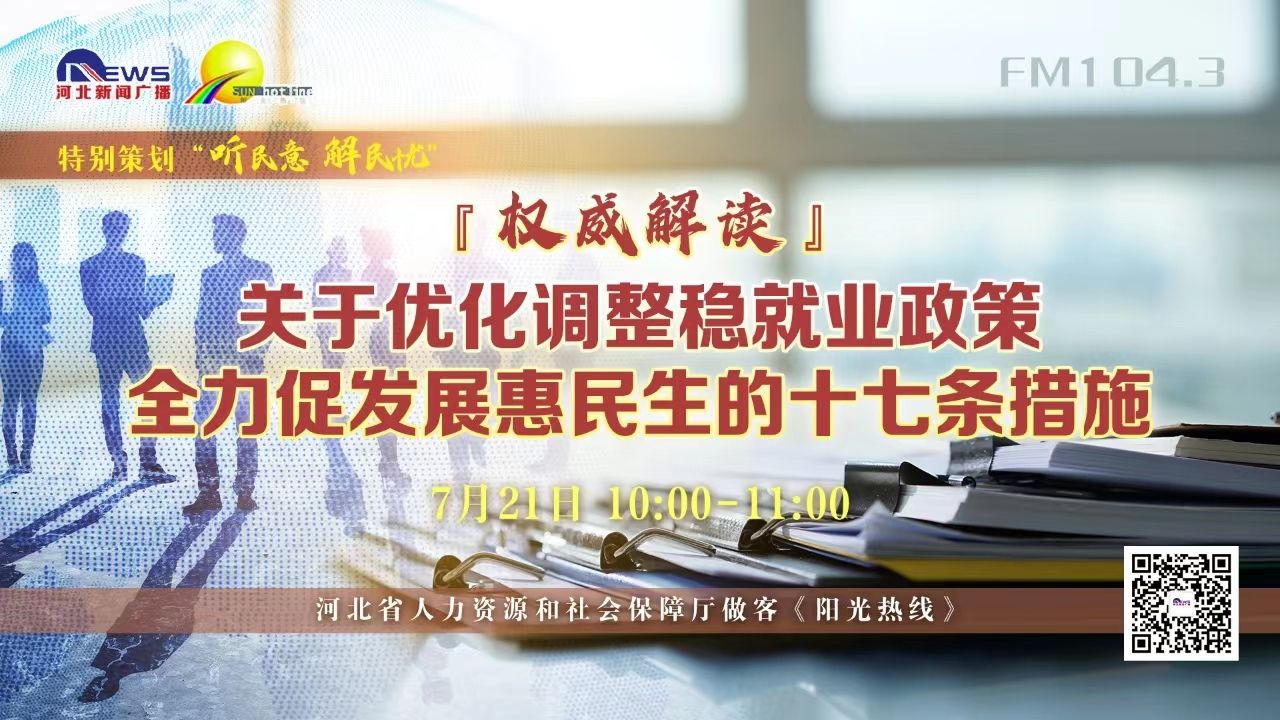 7月21日,新闻频率群《阳光热线》节目邀请省人社厅嘉宾做客直播间,权威解读《关于优化调整稳就业政策 全力促发展惠民生的十七条措施》,营造“稳就业、促发展、惠民生”的良好氛围。