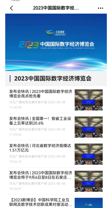 8月8日,新媒体中心在“冀时”客户端推出直播“2023中国国际数字经济博览会新闻发布会”,制作《发布会快讯》系列短视频,发布长图《动力澎湃!河北数字经济发展成绩亮眼》等。聚焦2023工业互联网和大数据产业发展大会,搭建专题,并推出探访直播《主播带您云逛展》;8月10日,在网、端对大会开幕式、分论坛进行视频直播,发布直播碎片化短视频10余篇,全景呈现大会精彩内容。