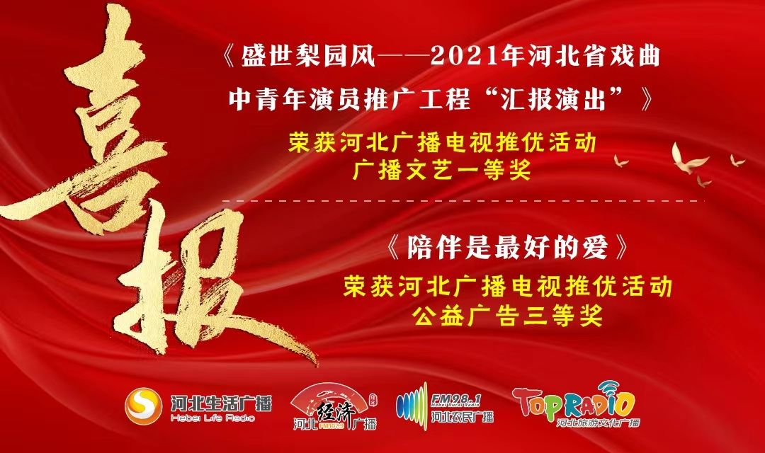 日前,河北广播电视推优活动获奖作品名录公布,生活频率群《盛世梨园风——2021年河北省戏曲中青年演员推广工程“汇报演出”》获得广播文艺一等奖,《陪伴是最好的爱》获得公益广告三等奖。
