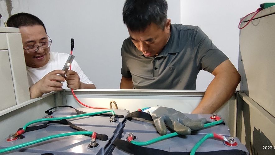 8月25日,八三四发射台白石山发射机房对30块60kw不间断电源电池进行了更换,解决电池老化问题。