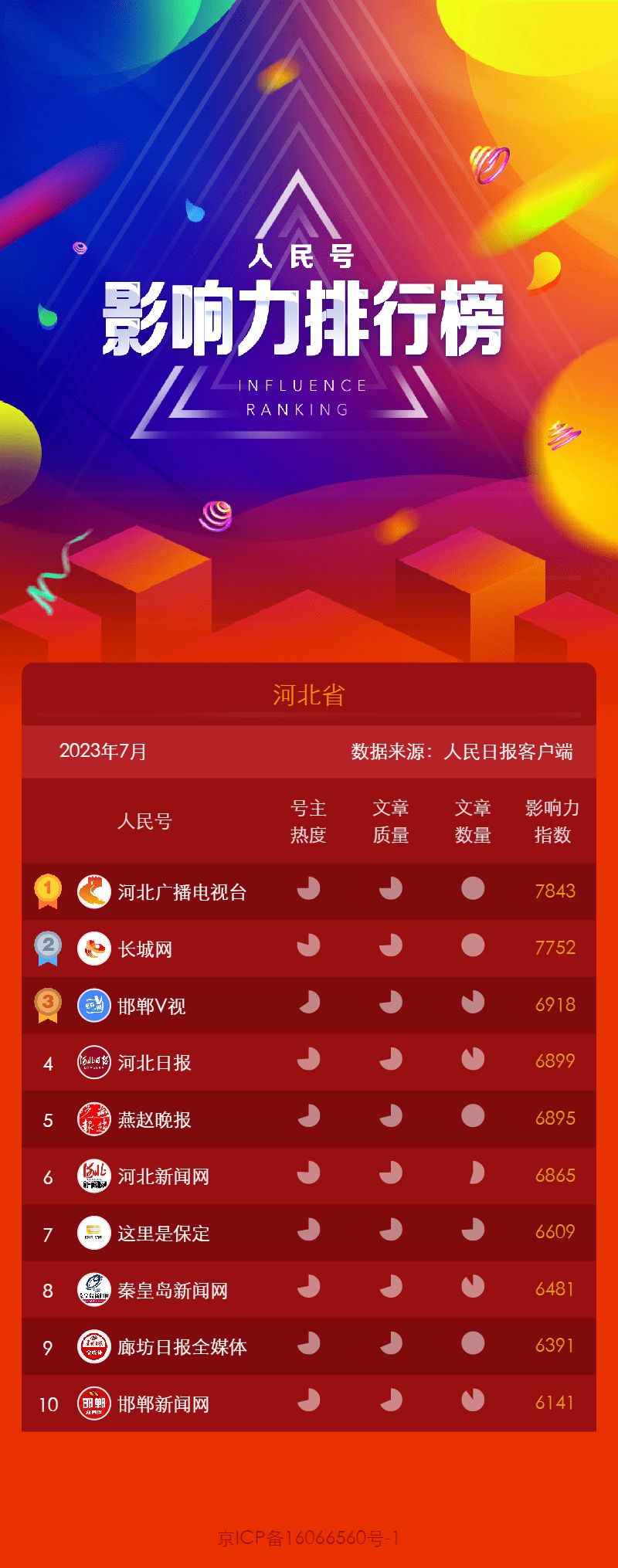 近期,“人民日报”客户端发布人民号7月影响力排行榜,“河北广播电视台”人民号位列影响力全国总榜第31名,媒体榜第16名,河北地域榜第1名。