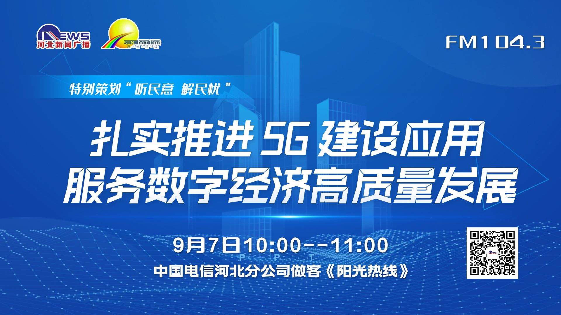 9月8日,新闻频率群《阳光热线》节目邀请中国电信河北分公司嘉宾做客直播间,围绕“扎实推进 5G建设应用,服务数字经济高质量发展”主题与听众在线交流,并就智慧社区、网络宽带便民服务等方面进行答疑解惑。