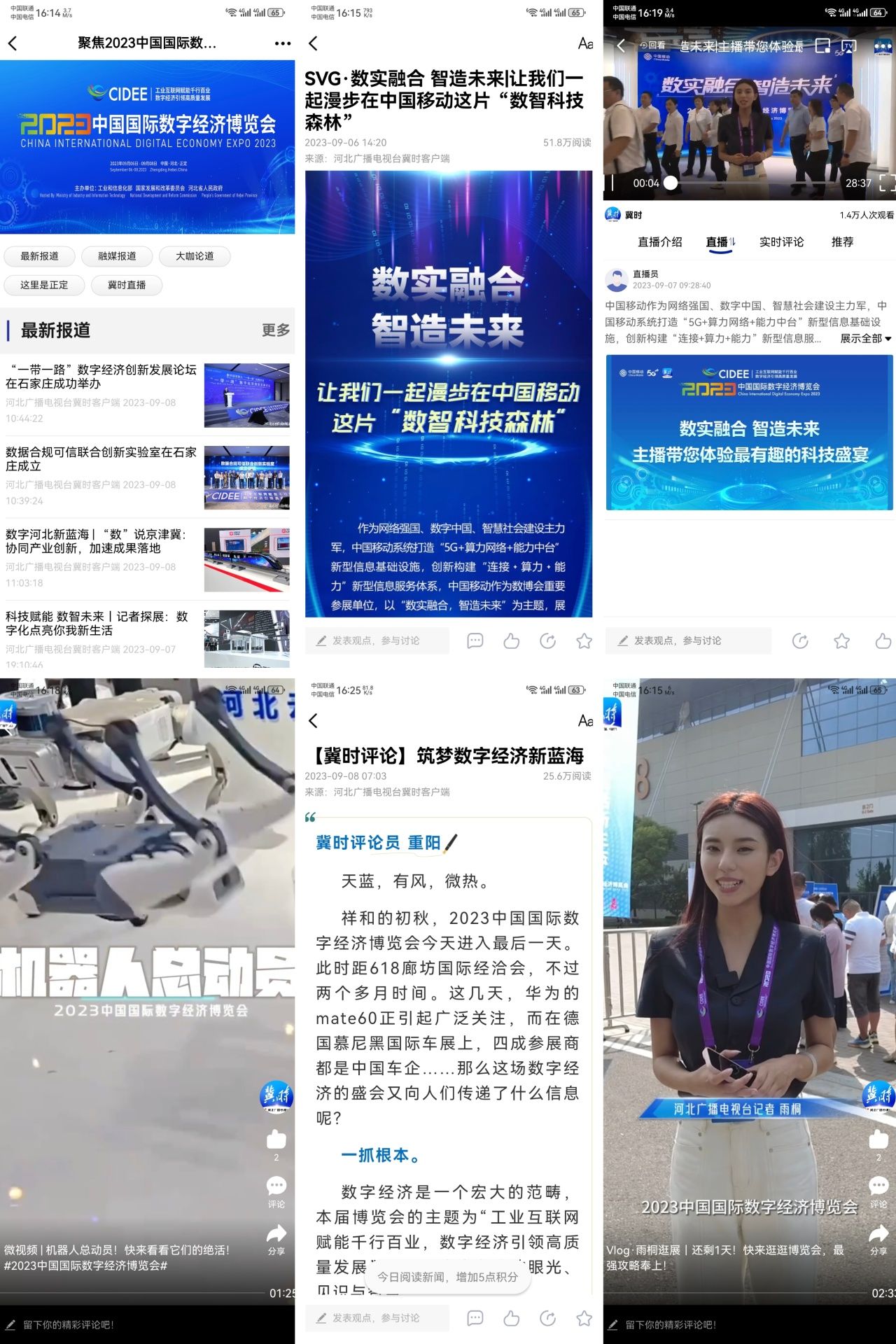 9月6日—8日,由工信部、国家发改委、省政府共同主办的2023中国国际数字经济博览会在石家庄举行。台(集团)聚焦“工业互联网赋能千行百业 数字经济引领高质量发展”主题,统筹全媒体平台资源,精心做好宣传报道、推出融媒产品、进行网络直播,营造浓厚舆论氛围。