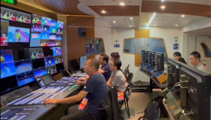 电视制作中心组建30余人转播团队,启用4K超高清转播车,配置遥控微型摄像机、高速摄像机、摇臂摄像机等设备,承接排球男子U18组赛事转播任务,组建涵盖管理、制作、技术等全流程岗位的30余人专业团队,高质量完成9个比赛日共27场比赛的直播转播。