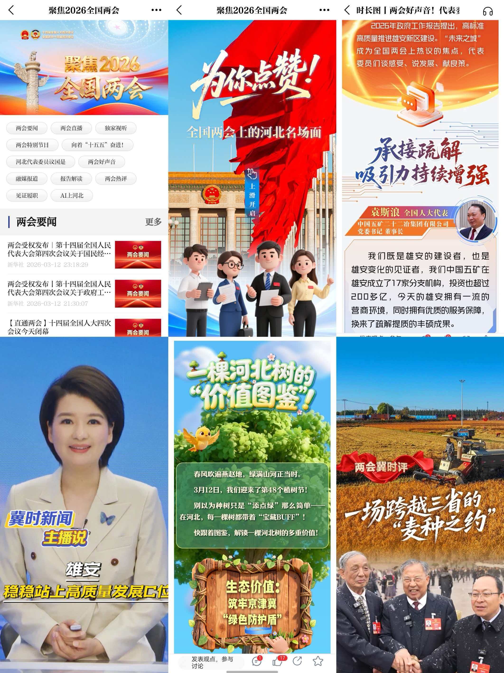 新媒体中心开设专题《聚焦2026全国两会》,集纳融媒报道;策划推出AI海报《AI上河北》《两会冀时评》《十图看懂:过去五年,河北有多拼!》《动动手指“读”报告 戳中满满幸福感》等新媒体特色产品,制作二创短视频62篇。36篇次原创、二创稿件被省委宣传部、省委网信办推送,2篇被全国广电新媒体联盟推送。