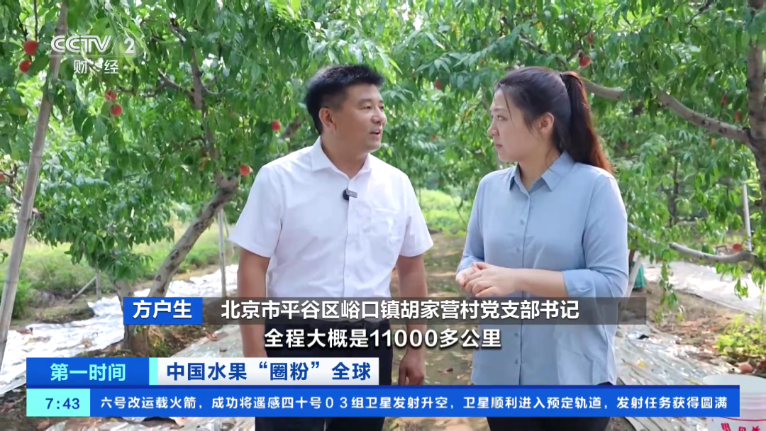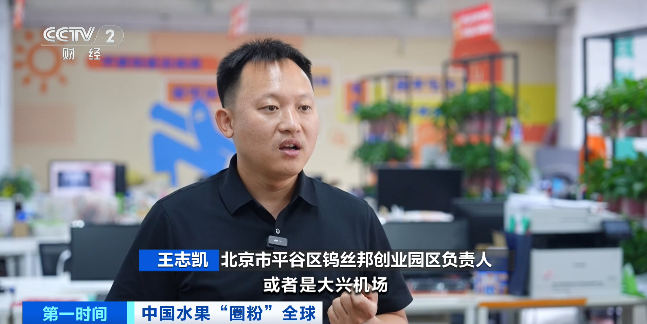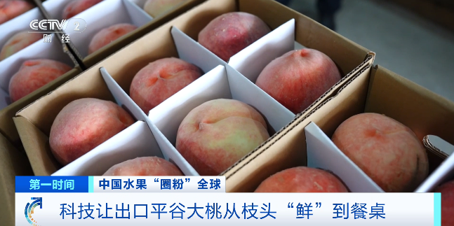 北京市平谷区钨丝邦创业园区负责人 王志凯:我们当天摘的桃第二天就送到首都机场或者是大兴机场,坐飞机当天到新加坡,隔一天清关,也就是说今天桃子在树尖,后天就在新加坡的餐桌上。