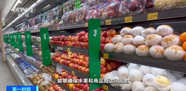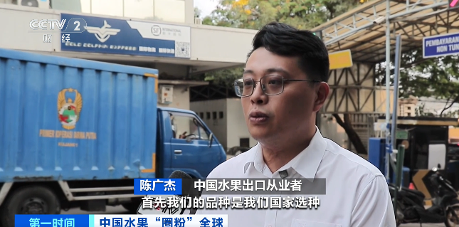 中国水果出口从业者 陈广杰:首先是我们国家的选种,果农的选种、种植方面的优势;同时在物流上也有非常大的优势,有一些中国船司,5天到7天就可以到达雅加达,在运输的过程中保持水果的新鲜。