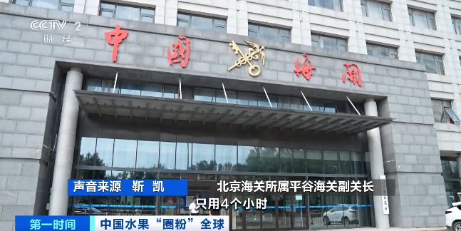 北京海关所属平谷海关副关长 靳凯:比如像第一次出口新加坡,只用4个小时,企业就完成了通关的流程,确保了大桃新鲜出口。