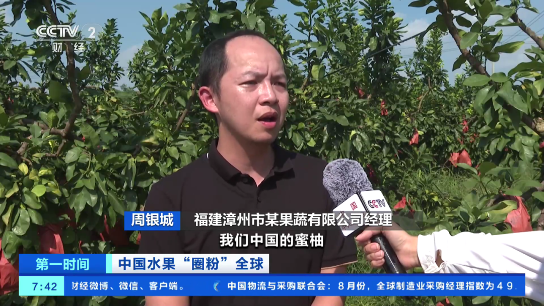 福建漳州市某果蔬有限公司经理 周银城:我们中国的蜜柚刚好可以弥补新西兰蜜柚的空白期,7月份到9月份是他们的断档期。