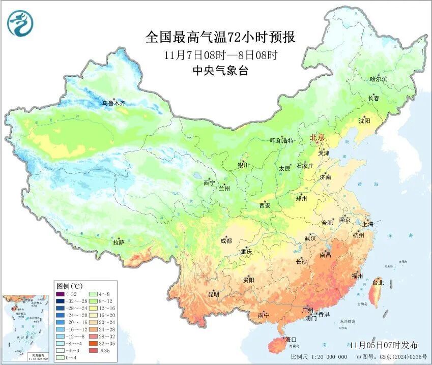 而在冷空气抵达南方前,今后三天,南方大部降雨消退,气温普遍回升。最高气温20℃以上的范围会迅速扩大,其中江南南部、华南等地最高气温能达到30℃左右。