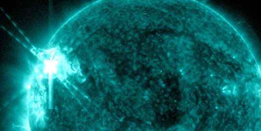 此次耀斑还引发了太阳的连锁反应,形成了日冕物质抛射(CME)过程,最终引发地磁暴。