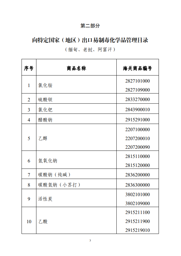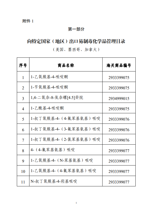 为进一步做好易制毒化学品出口管理工作,根据《向特定国家(地区)出口易制毒化学品暂行管理规定》,商务部、公安部、应急管理部、海关总署和国家药监局决定对《向特定国家(地区)出口易制毒化学品管理目录》《特定国家(地区)目录》进行调整,将美国、墨西哥、加拿大增列入《特定国家(地区)目录》,并单独增列针对上述3个国家的13种易制毒化学品。