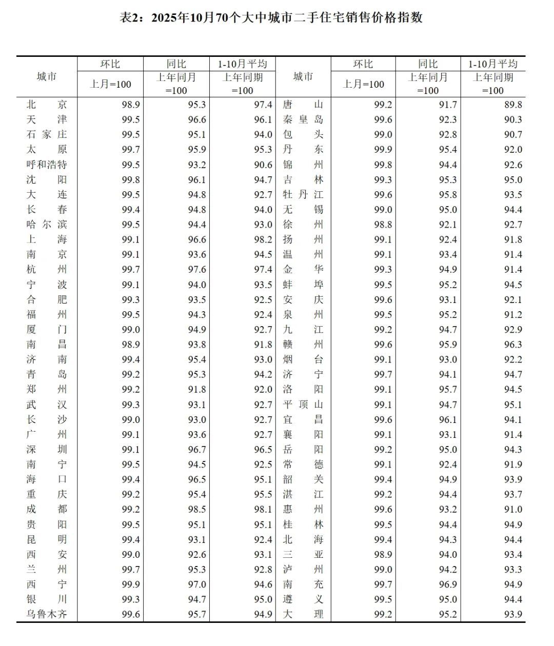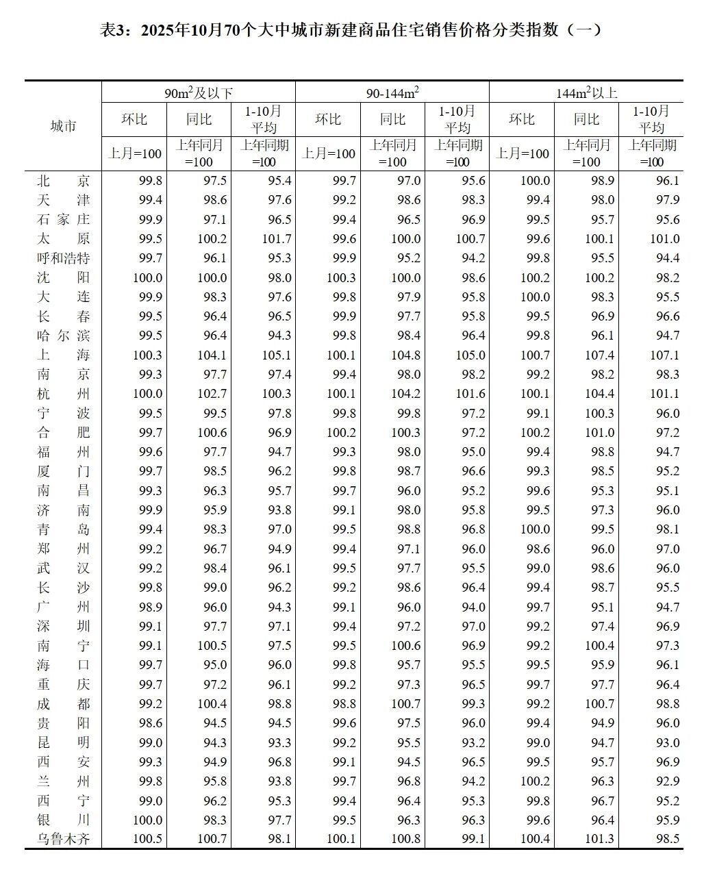 ——国家统计局城市司首席统计师王中华解读2025年10月份商品住宅销售价格变动情况统计数据