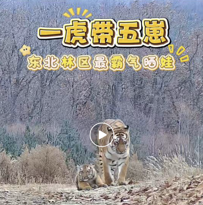 今年11月6日,珲春片区还曾监测到一只雌虎带着四只幼崽的珍贵影像。这是珲春第四次记录到“一虎带四崽”,也是中国自有记录以来,仅有的四次“一虎产四崽”的野外记录。