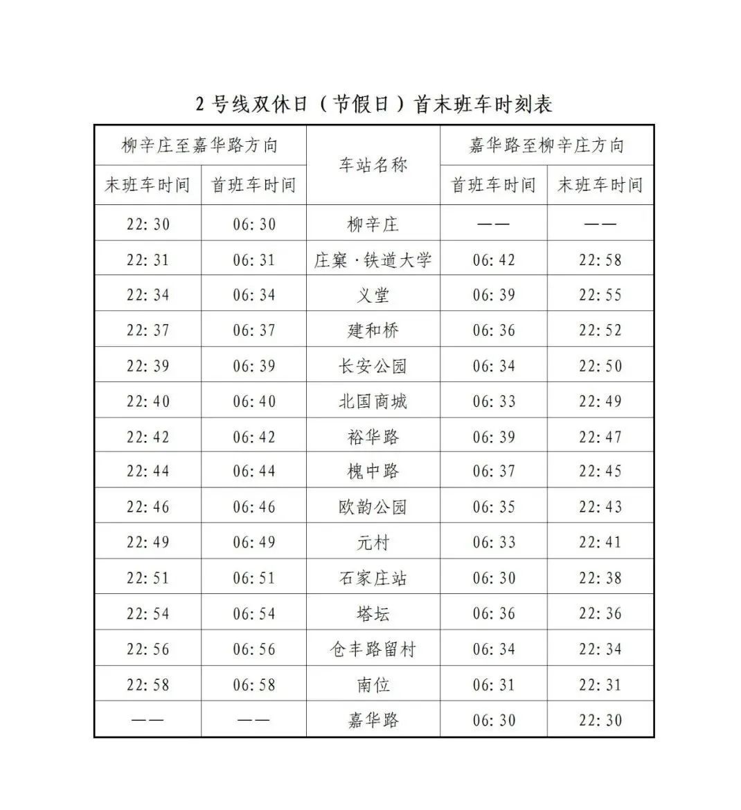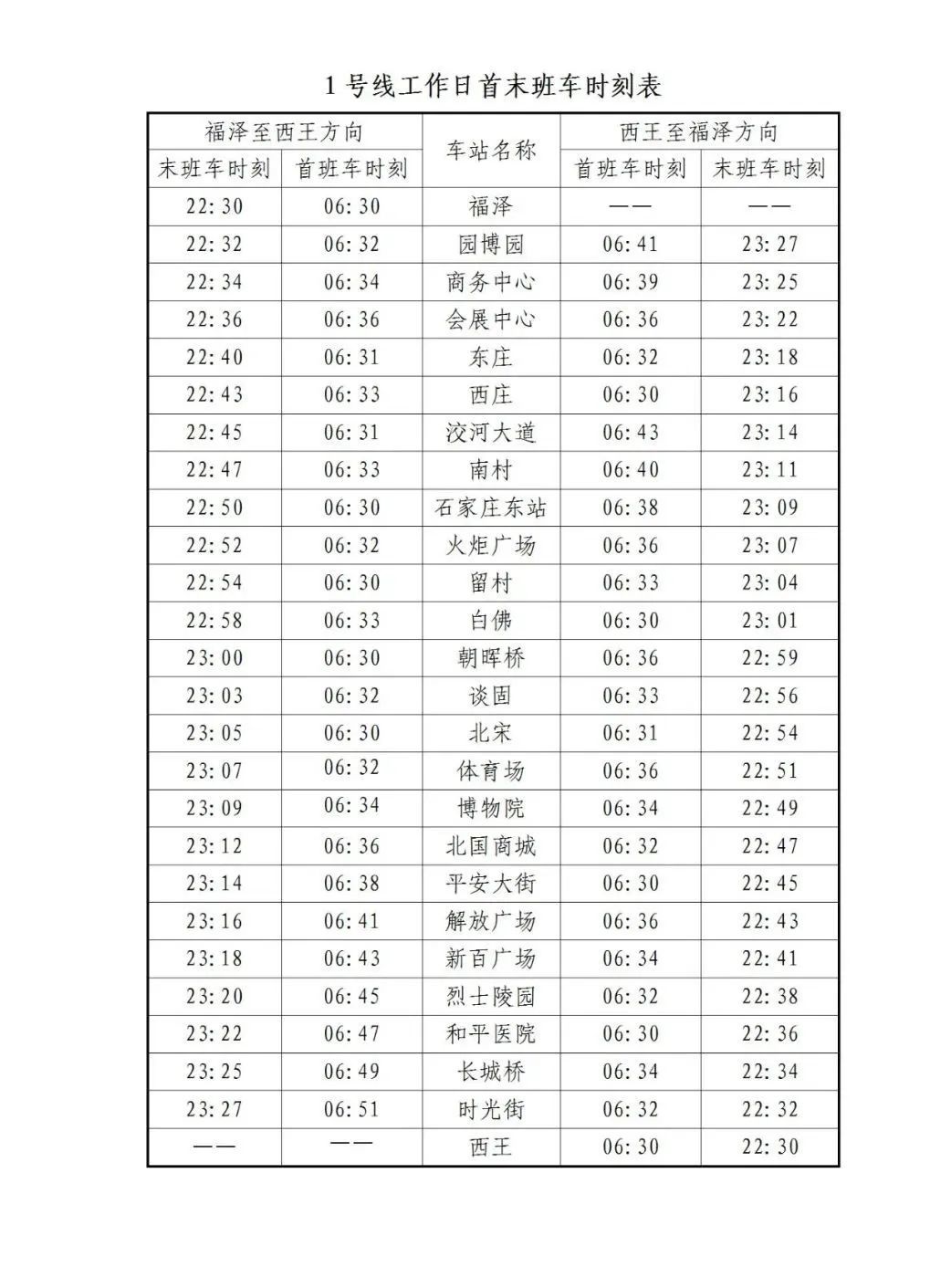 为进一步提升石家庄地铁线网运营服务水平,助力夜经济繁荣发展,5月30日至10月8日,石家庄地铁全线网延长运营服务时间30分钟,即1、2、3号线始发站末班车发车时间延长至22:30。石家庄地铁运营服务时间由6:30—22:00调整为6:30—22:30。