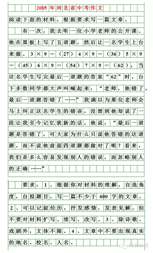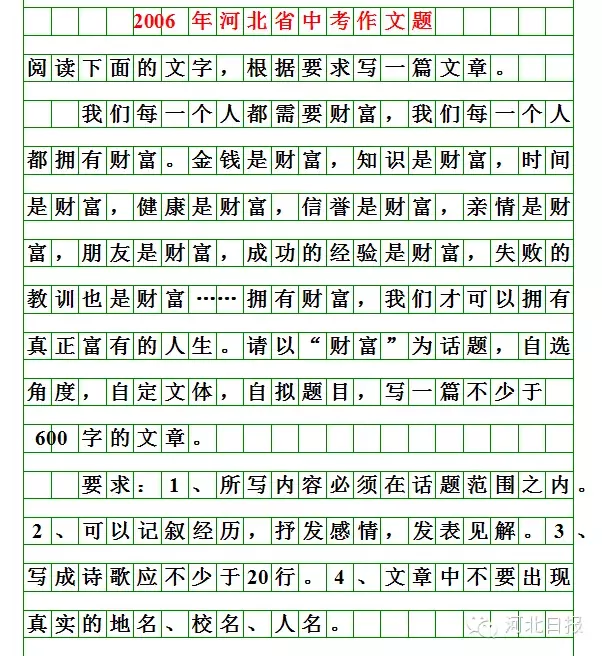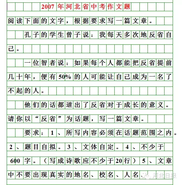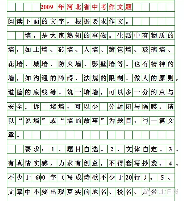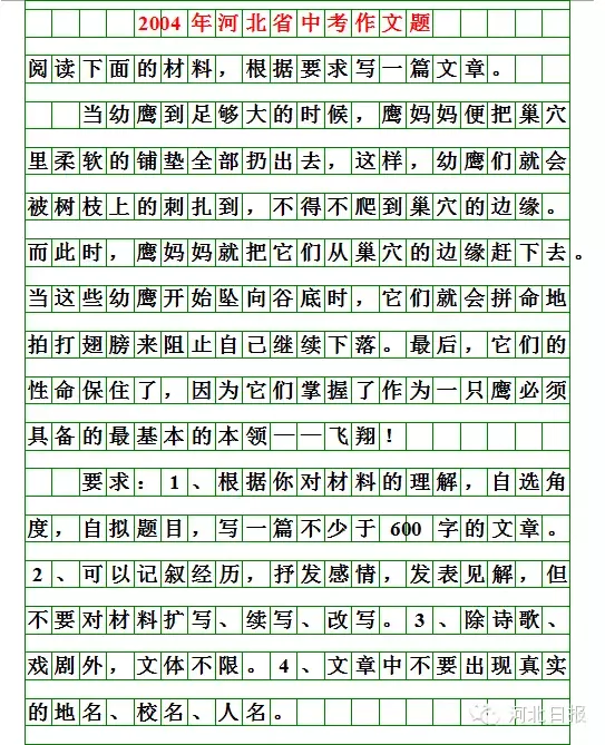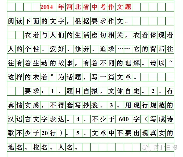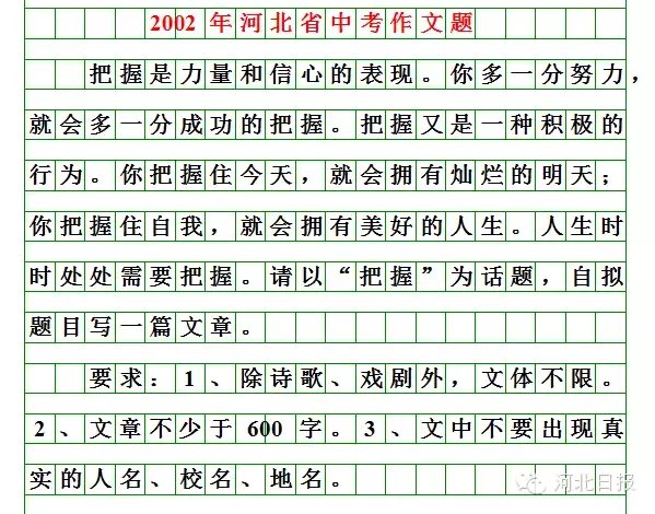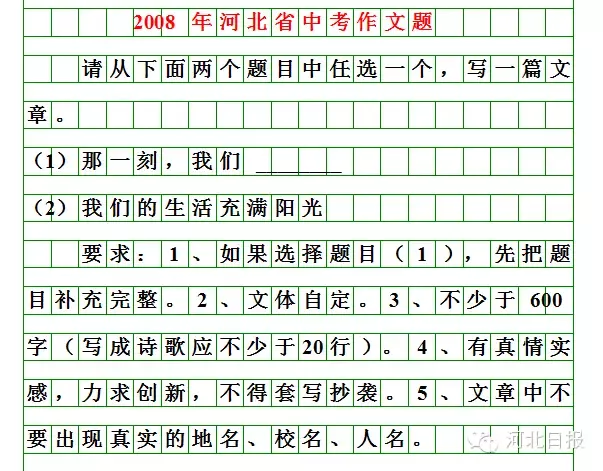 今年的河北中考作文题来了