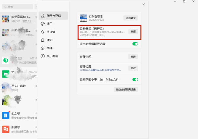 而一旦我们设置为电脑端微信可直接登录后,在“设置-账号与存储-自动登录”这里,便多了一个“关闭”的按钮。