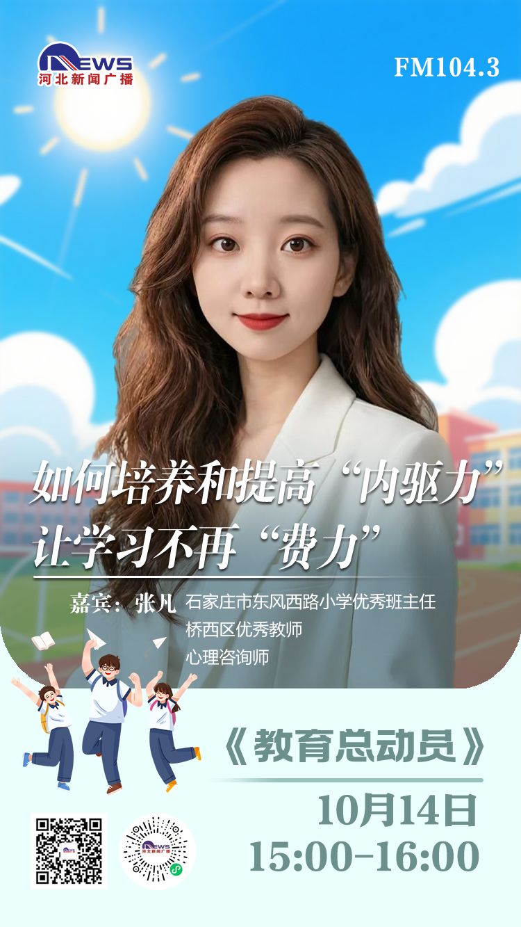 我们常常看到这样的场景:家长在身后催促,孩子在桌前磨蹭,作业成为了亲子关系的“头号杀手”;考试分数像一把达摩克利斯之剑,高悬在每个家庭上空。许多家长感到困惑:为什么我们付出了那么多,孩子却显得很被动?仿佛学习是一件无比费力的事情。问题的核心,或许并不在于知识的难度,而在于驱动孩子去学习的那股力量——是外在的压力,还是内在的渴望?今天,我们邀请石家庄市东风西路小学优秀班主任、桥西区优秀教师、心理咨询师张凡老师,分享如何培养和提高“内驱力”,让学习从“要我学”转变为“我要学”,真正实现“不费力”的成长。