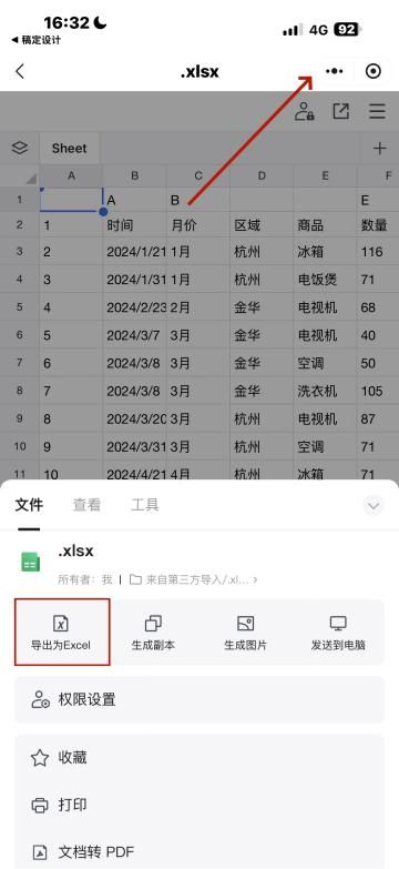 之后点击右上角“...”,选择“导出为excel文件”即可。